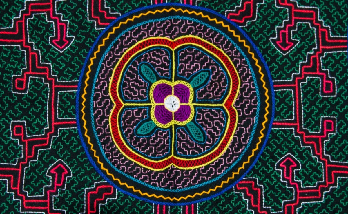 Shipibo designs express the compelling need to bring the cosmic, heavenly order down to earth, to bring order into chaos, to re-establish harmony. To the Shipibo, the entire universe has three cosmic regions – the upper world, which is represented by the great Sky Serpent (the Milky Way) – the world around them where we live in every day – and the underworld. For the Shipibo- Conibo these three cosmic regions are made of and covered by quené designs, closely interwoven, constantly emerging, merging and incessantly shifting from the invisible to the visible realms. Their shamans act as interpreters and are the focus of the relationship existing between medicine, the cosmos, quené designs and music. Intoxicated and illuminated by ayahuasca, they are capable of accessing the different realms of creation, communicating with spirit beings and navigating through the upper, middle and lower worlds.