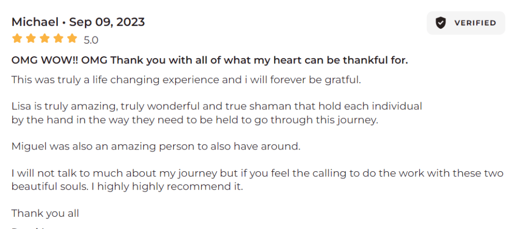 Lisa is a knowledgable and intuitive medicine woman. She really has a beautiful calming energy, that incites ‘trust’... which is such a huge part of this experience.